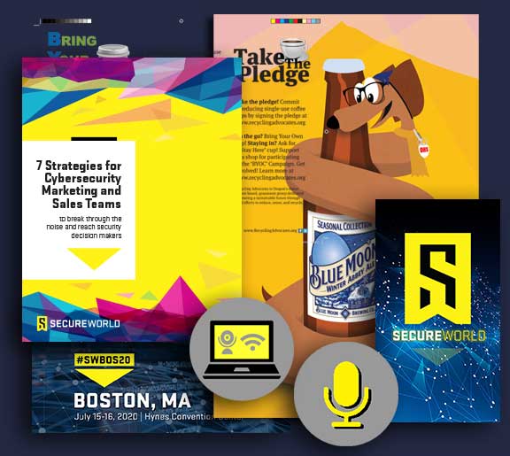 20' backdrops, posters, signage, banners, direct mail, coasters, print material, tactile promotional handouts for marketing or in-person events.